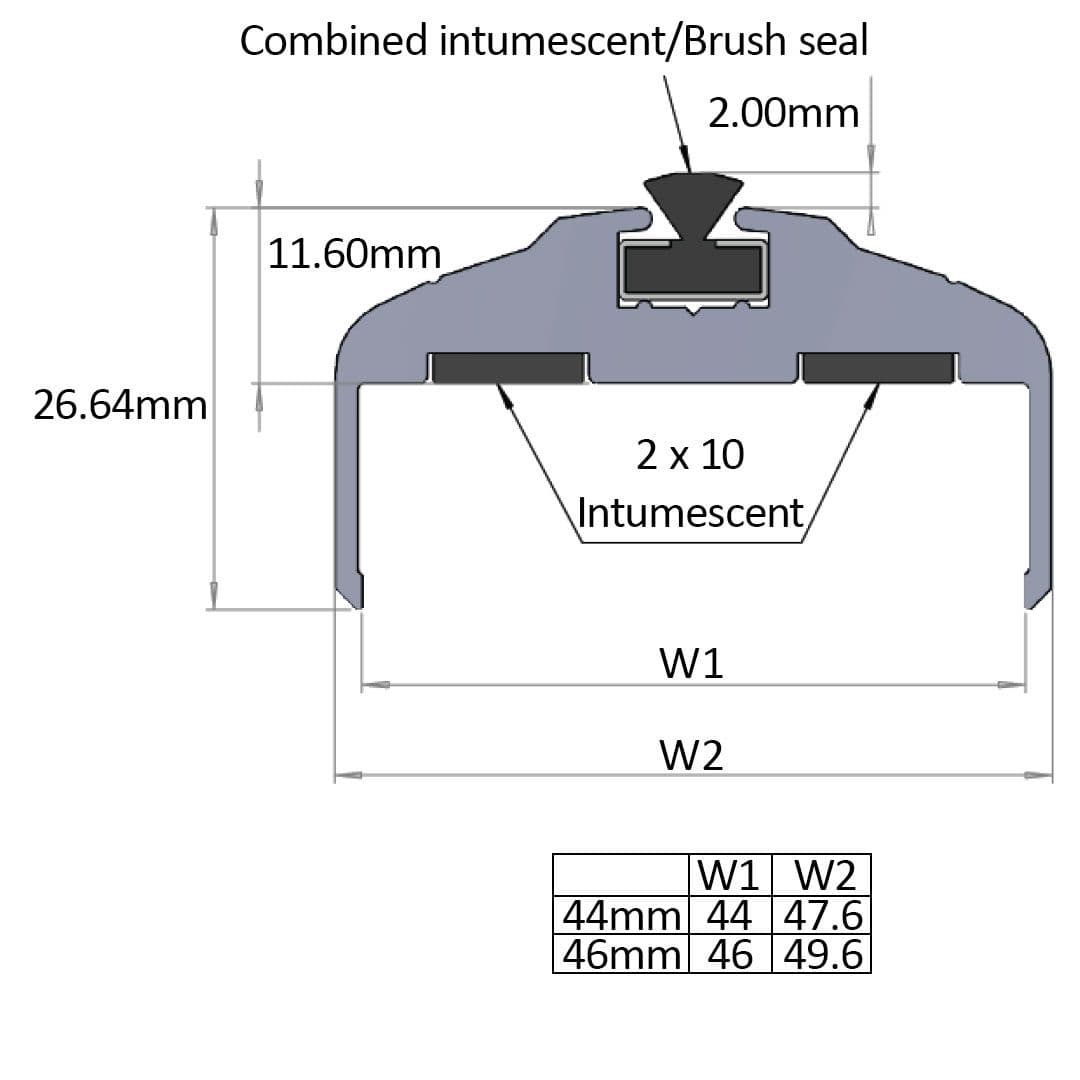 Intumescent Fire Rated Door Edge Guard Rounded - 44mm - Satin Anodised Aluminium