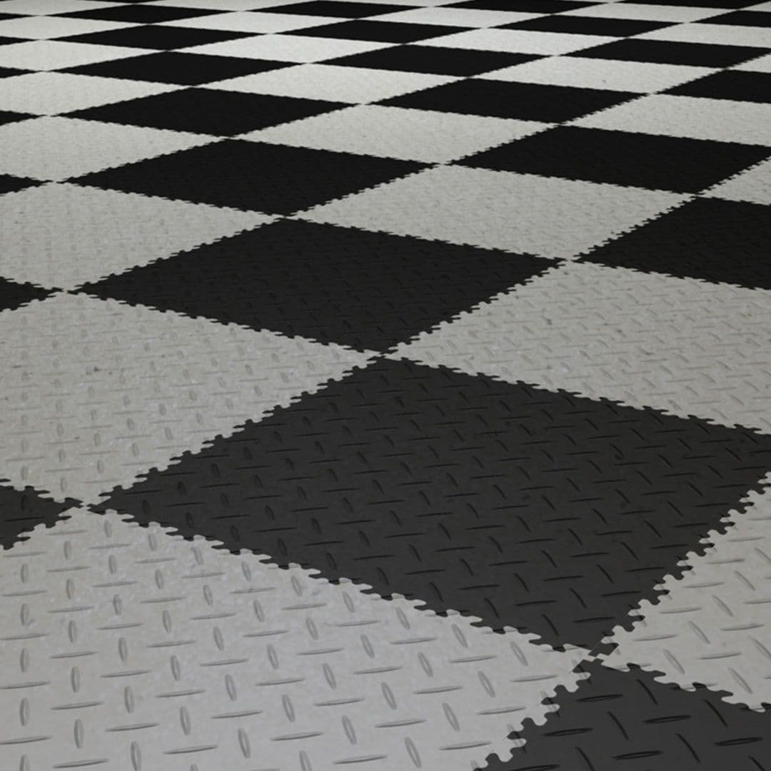 Looking to kick things up a notch with your flooring. Equip your flooring space with these essentials to make your space unique and more of a productive area. These MotoLock Heavy Duty Interlocking Tiles (Dark Grey Diamond-plate) are a perfect solution for Garages, Workshops, Warehouses, Gyms, Factories, Commercial and Temporary Spaces making your flooring space stand out.
